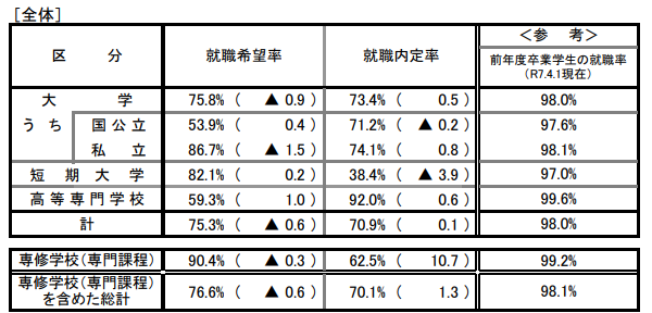 令和7年度大学・短期大学・高等専門学校及び専修学校卒業予定者の就職内定状況調査(10月1日現在)について