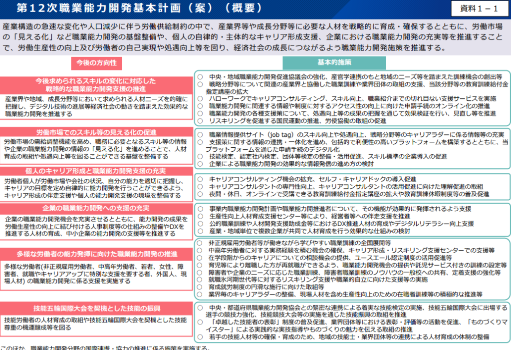 第12次職業能力開発基本計画(案)概要